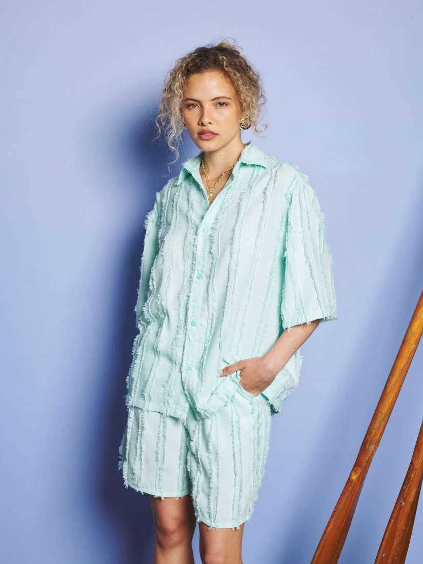 A shirt that speaks of sun-faded docks and driftwood finds. Striped and frayed, The Davy Frayed Boxy Shirt is the easy layer that tells tales of endless afternoons.