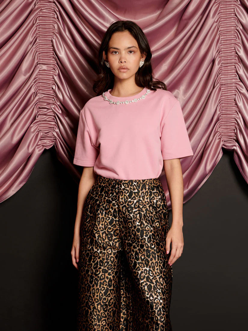 The Monty Gem T-Shirt takes jersey into the limelight with a sparkling gem and pearl flower trim at the neckline. A casual piece with a dazzling twist to it.