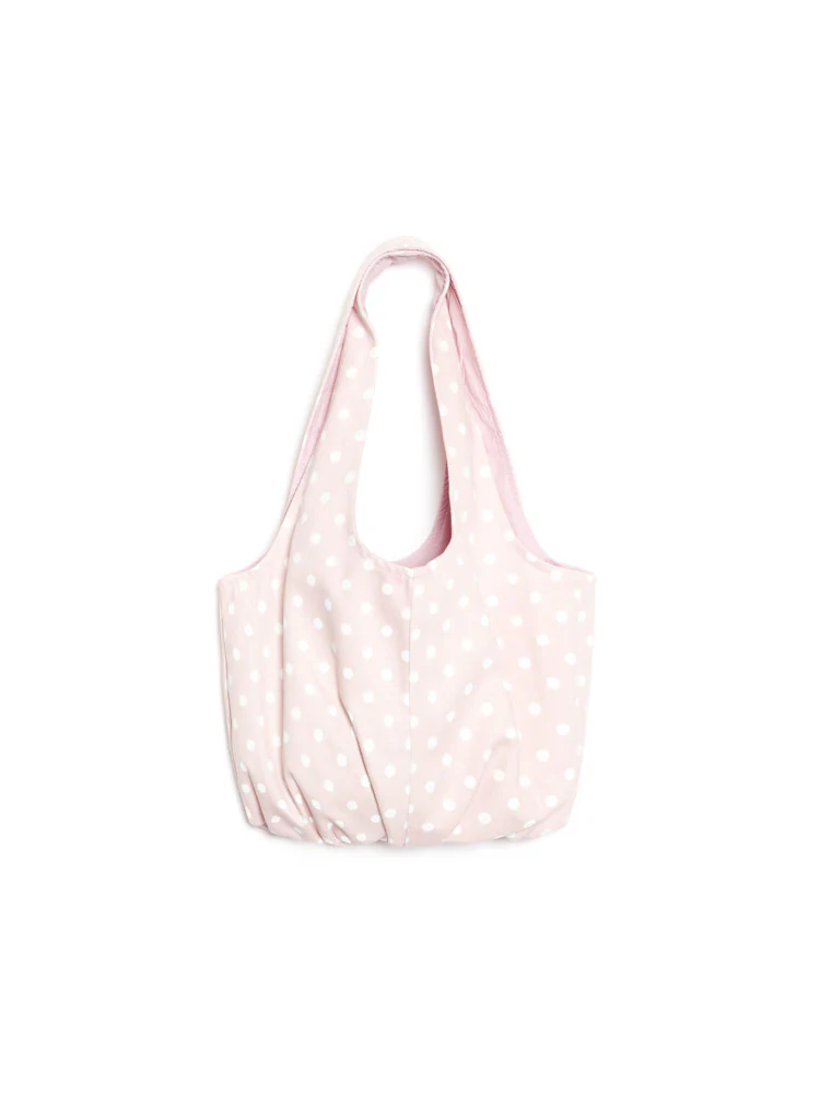Dotted like scattered petals across denim skies, the Violette Spot Bubble Bag is a charming companion for afternoons spent sketching among roses.