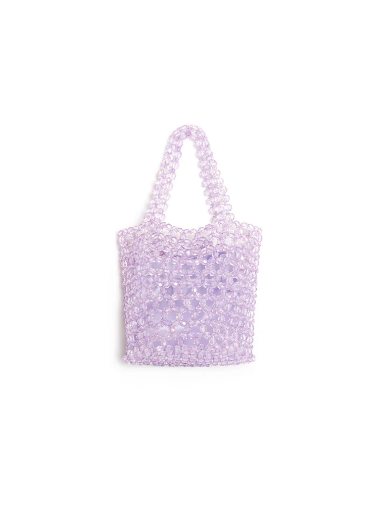 Lilac beads shimmer like cascading wisteria vines in full flourish. Light-catching and delicate, The Wisteria Bead Bag carries the poetry of spring evenings.